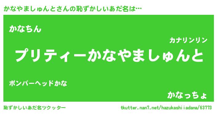 | ヘコむあだ名 | 『かなにゅー』『かなやましゅんと(爆)』 |