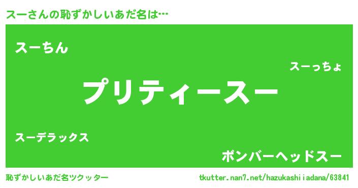 | 男性向けラノベタイトル風あだ名 | 『スーの憂鬱』『はたらくスーさま!』 |