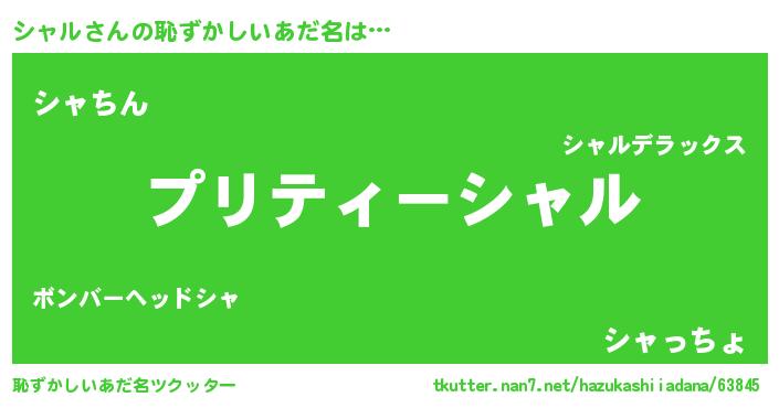 | ヘコむあだ名 | 『シャふぇ~』『シャル(爆)』 |