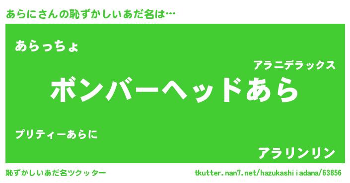 | 意味不明あだ名 | 『眠気覚ましガムあらに味』『自称あらに』 |