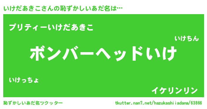 | ヘコむあだ名 | 『いけにゅー』『いけを』『豆乳』 |