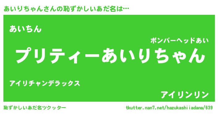 | ヘコむあだ名 | 『あいにゅー』『あいりちゃん(爆)』 |