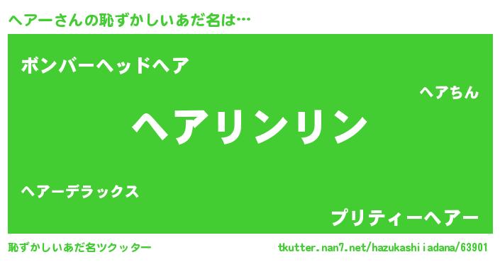 | 男性向けラノベタイトル風あだ名 | 『ヘアースレイヤー』『ヘアーの憂鬱』 |