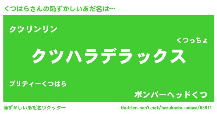 | 意味不明あだ名 | 『自称くつはら』『くつはらフォーエバー』 |