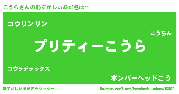 | 胡散臭い通販商品みたいなあだ名 | 『あなたにだけ特別に提供する世界で10本だけ現存している希少なブランデー…その名も「こうら」』 |