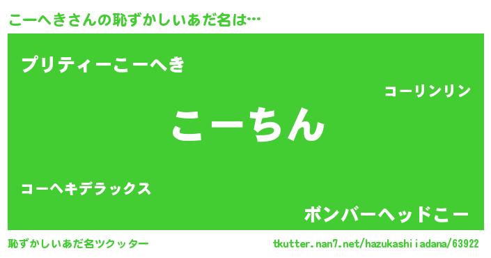 | ヘコむあだ名 | 『こーへき(爆)』『こーにゅー』 |