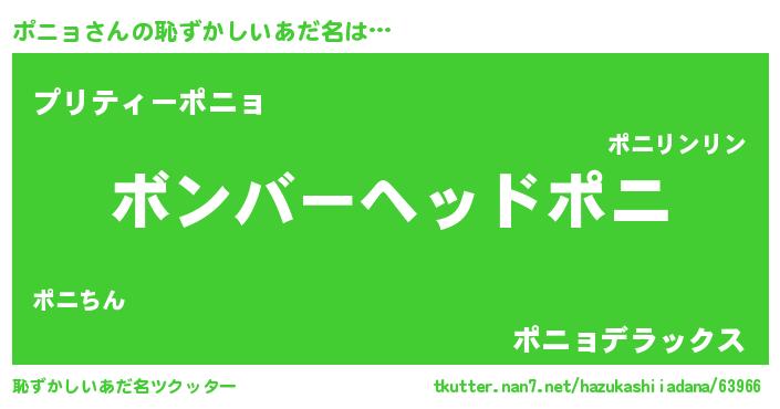| ヘコむあだ名 | 『ポニふぇ~』『ポニ太郎』 |