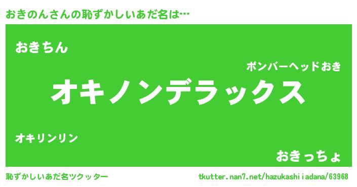 | 意味不明あだ名 | 『自称おきのん』『永久保存おきのん』 |