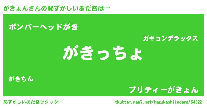 | 意味不明あだ名 | 『がきょんフォーエバー』『自称がきょん』 |