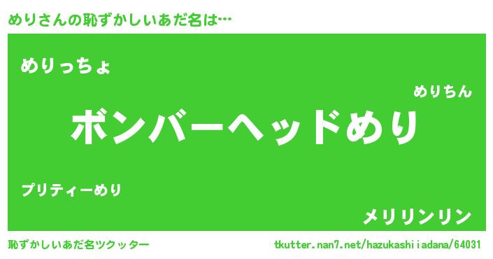 | ヒーロー風カッコイイあだ名 | 『天空の使者めり』『ウルトラめりマン』 |