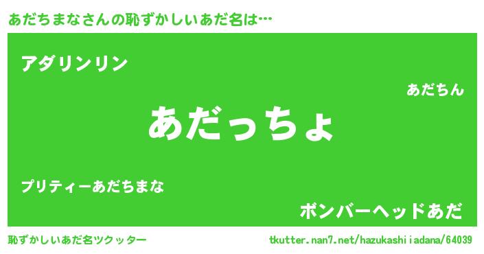 | 意味不明あだ名 | 『住所不定無職あだちまな(41歳)』 |