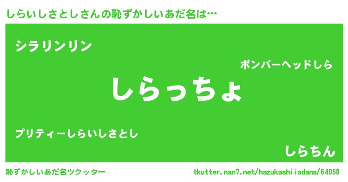 | ポケモン風あだ名 | 『シライダネ』『ヒシライシサトシ』 |