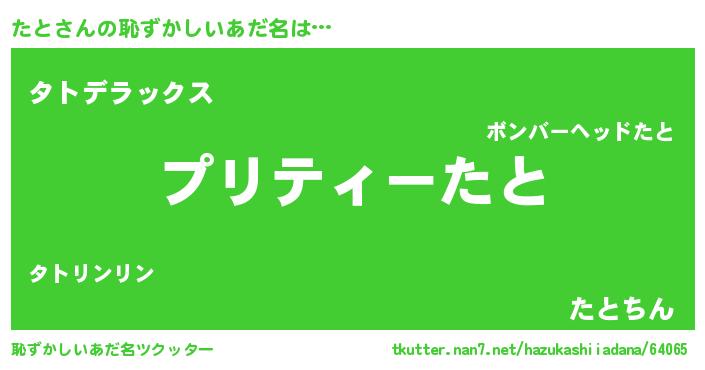 | ヘコむあだ名 | 『たとにー』『たと(小並感)』 |