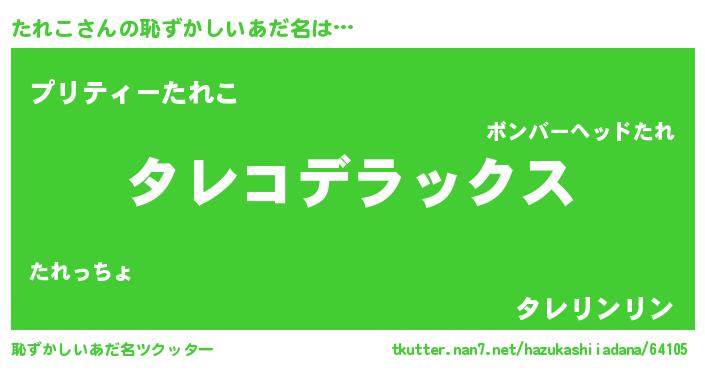 | 男性向けラノベタイトル風あだ名 | 『魔法科高校のたれこ』 |