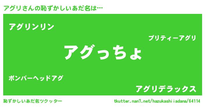 | 女子向けラノベタイトル風あだ名 | 『アグリの雑貨屋さん』『闇のアグリ』 |