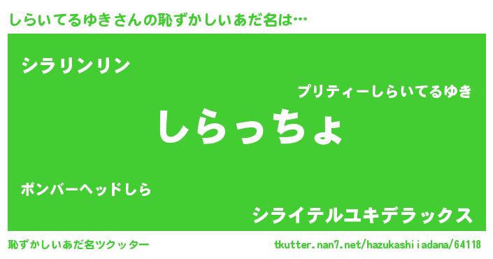 | 伝説のあだ名 | 『秘められし忍者しらいてるゆき』 |