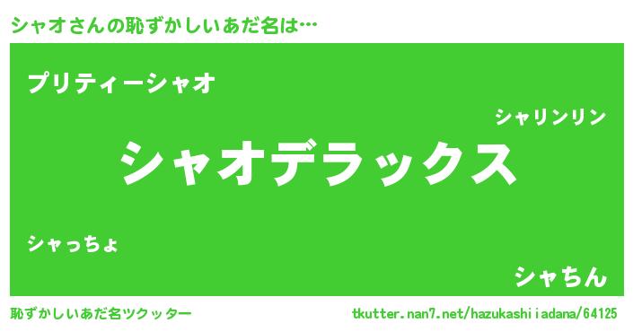 | 男性向けラノベタイトル風あだ名 | 『Re:シャオから始める異世界生活』 |