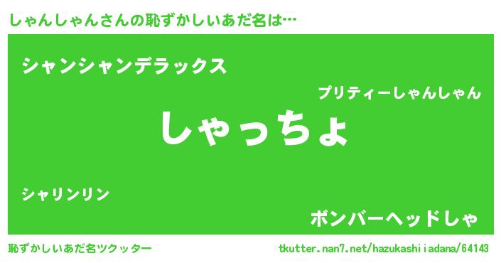 | 意味不明あだ名 | 『しゃんしゃんフォーエバー』 |