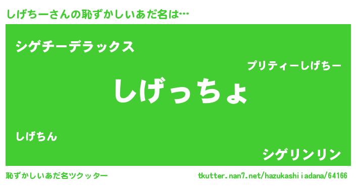 | 意味不明あだ名 | 『住所不定無職しげちー(89歳)』 |