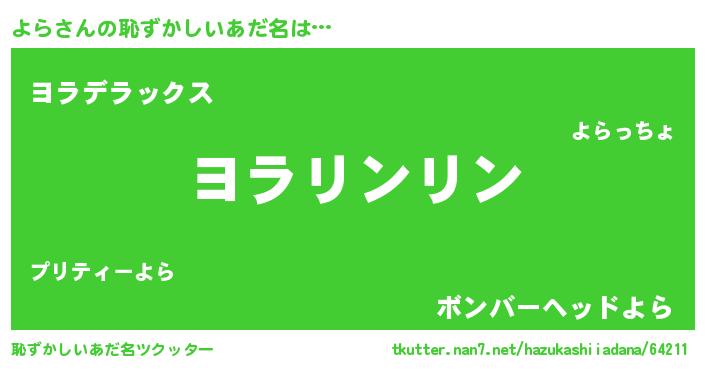 | ヘコむあだ名 | 『よらぷりん』『牛乳』『よらにゅー』 |