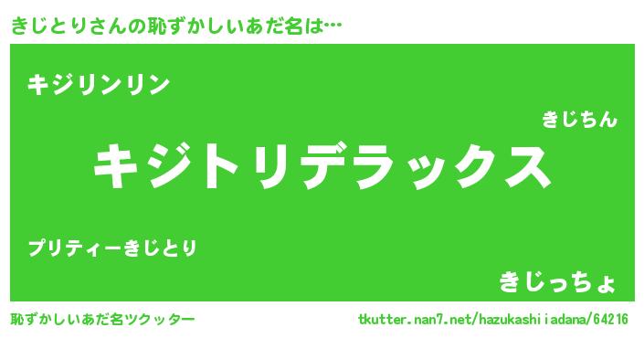 | ヒーロー風カッコイイあだ名 | 『最強戦士キジトリ』『黄金騎士キジ』 |