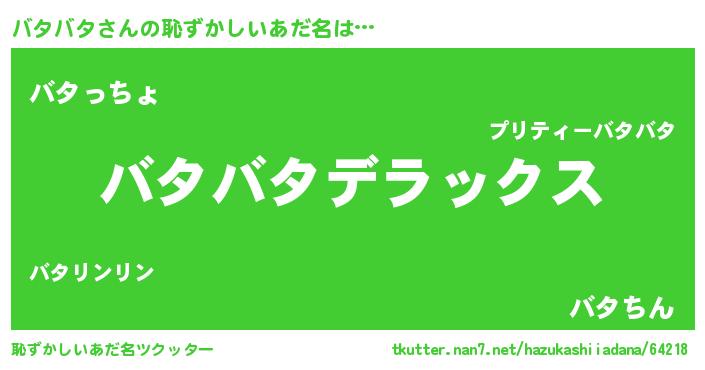 | ヘコむあだ名 | 『豆乳』『バタバタ(爆)』『バタもー』 |