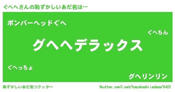 | ヒーロー風カッコイイあだ名 | 『サイバー戦士グヘヘ』『仮面グヘダー』 |