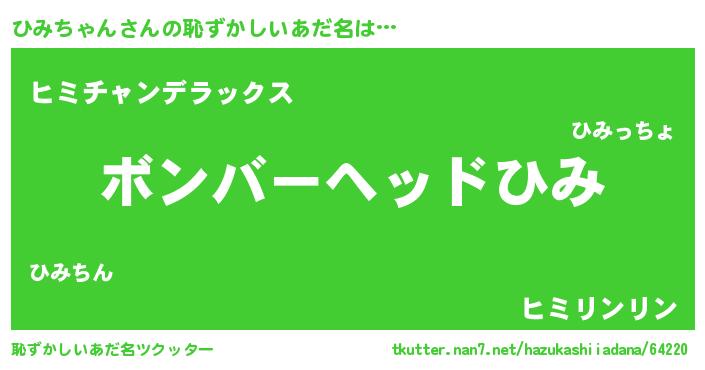 | ヒーロー風カッコイイあだ名 | 『仮面ヒミダー』『友情の使者ひみちゃん』 |