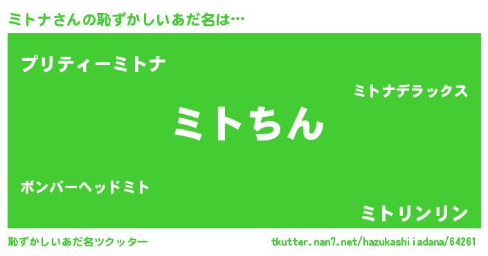| ヘコむあだ名 | 『ミトナ(苦笑)』『ミトにゅー』 |