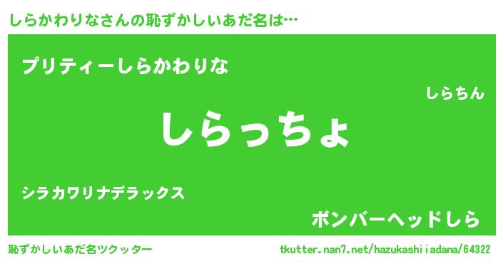 | ヒーロー風カッコイイあだ名 | 『仮面シラダー』『スーパーシラカワリナ』 |