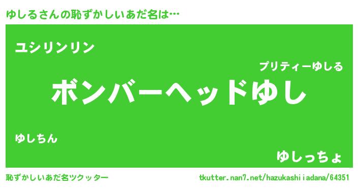 | 男性向けラノベタイトル風あだ名 | 『魔弾の王とゆしる』『ユシルスレイヤー』 |