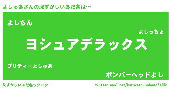 | 意味不明あだ名 | 『自称よしゅあ』『なめこ科よしゅあ属』 |