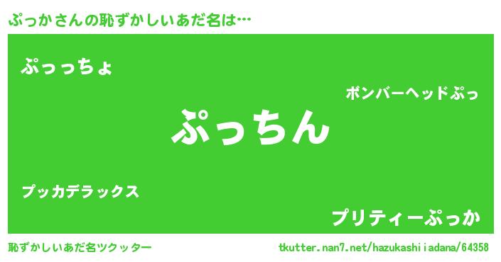 | 意味不明あだ名 | 『永久保存ぷっか』『ぷっかフォーエバー』 |