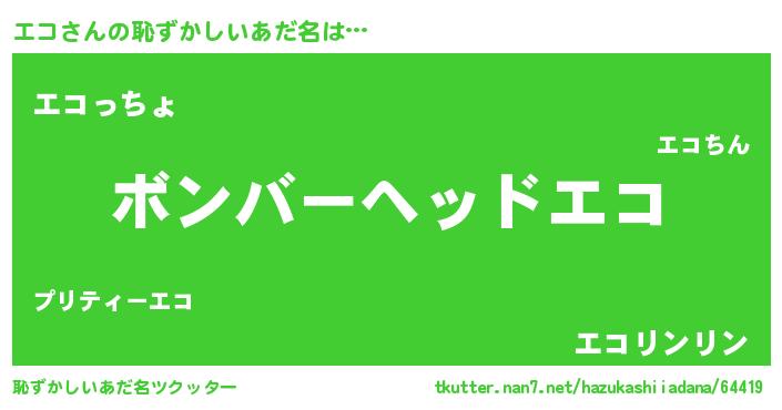 | ヒーロー風カッコイイあだ名 | 『愛の使者エコ』『ウルトラエコマン』 |