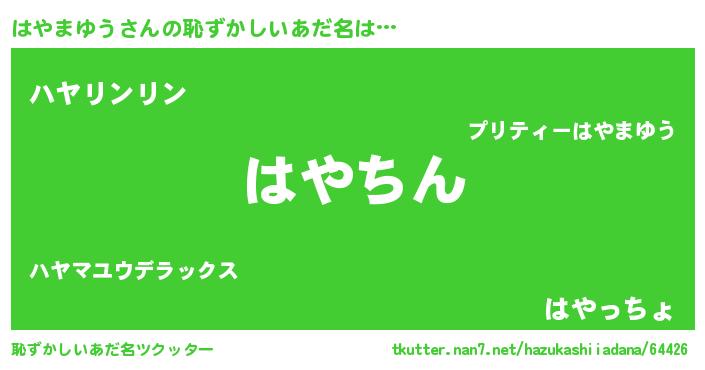 | 意味不明あだ名 | 『永久保存はやまゆう』『自称はやまゆう』 |