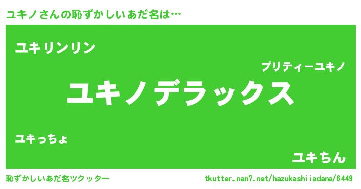 | ヘコむあだ名 | 『ユキぷりん』『ユキノ(爆)』『牛乳』 |