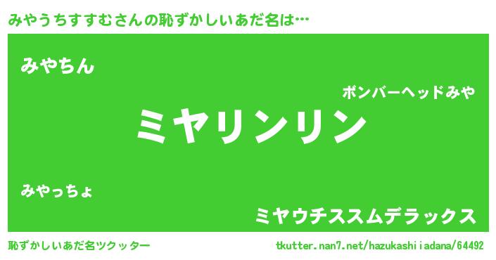 | ヘコむあだ名 | 『みやお』『みやうちすすむ(苦笑)』 |