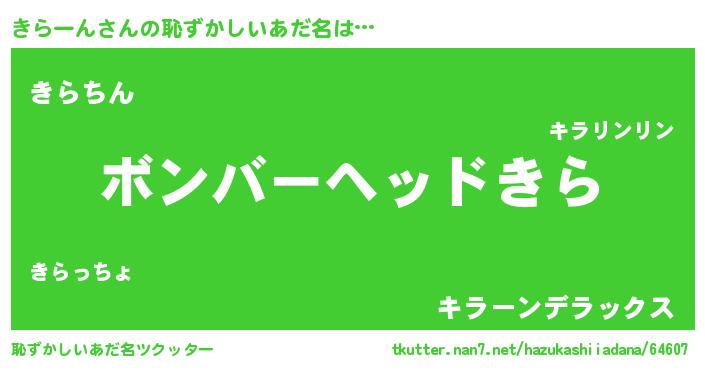 | ヘコむあだ名 | 『きらーん(爆)』『きらお』『つくし』 |