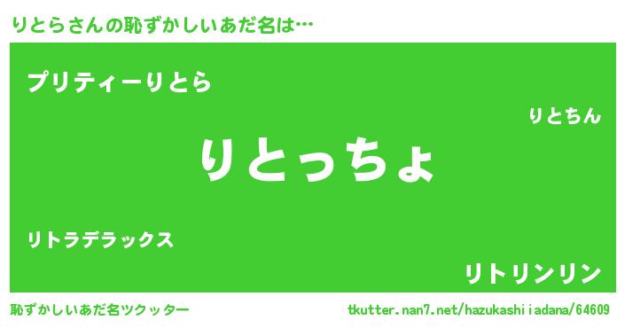 | 意味不明あだ名 | 『りとらフォーエバー』『ペロリンりとら』 |