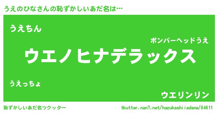| 意味不明あだ名 | 『自称うえのひな』『永久保存うえのひな』 |