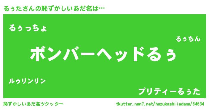 | ヒーロー風カッコイイあだ名 | 『仮面ルゥダー』『愛の使者るぅた』 |