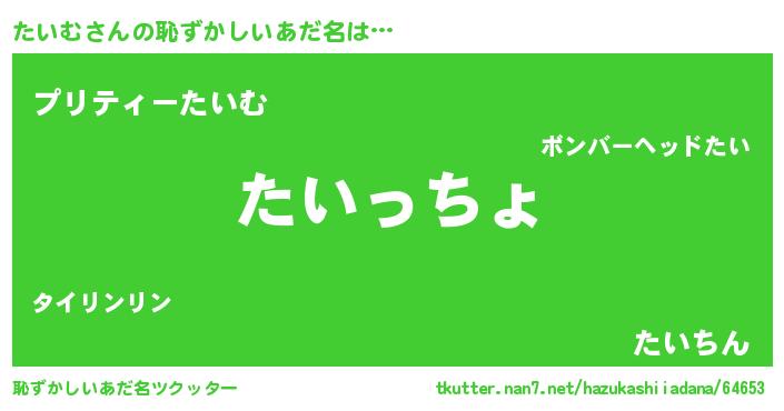 | ヘコむあだ名 | 『牛乳』『たいにゅー』『たいむ(笑)』 |