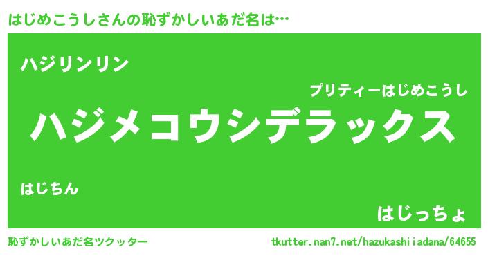 | 女子向けラノベタイトル風あだ名 | 『はじめこうしなんてお断りですっ。』 |