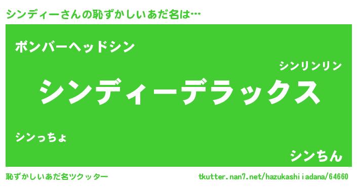 | 意味不明あだ名 | 『自称シンディー』『永久保存シンディー』 |