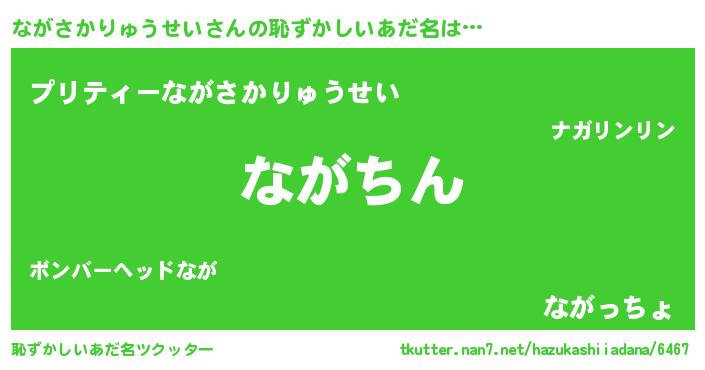 | 男性向けラノベタイトル風あだ名 | 『ながさかりゅうせいという概念が存在しない退屈な世界 』 |