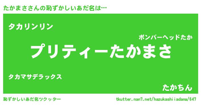 | ヒーロー風カッコイイあだ名 | 『スーパータカマサ』『魔戒騎士タカ』 |