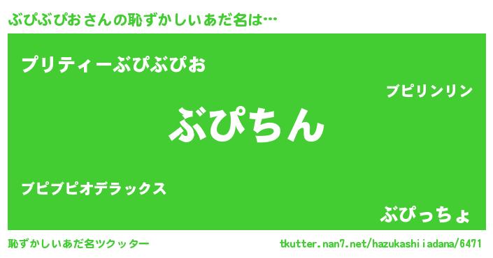 | ヘコむあだ名 | 『ぶぴぶぴお(遠い目)』『ぶぴふぇ~』 |