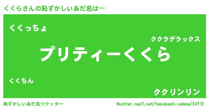 | ヒーロー風カッコイイあだ名 | 『スーパーククラ』『ウルトラくくらマン』 |