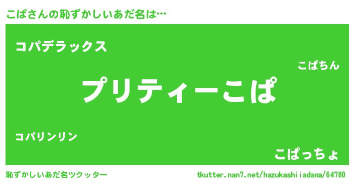 | 意味不明あだ名 | 『ペロリンこぱ』『自称こぱ』 |