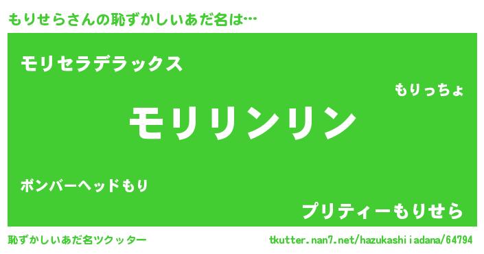 | ヒーロー風カッコイイあだ名 | 『炎刃騎士モリ』『サイバー戦士モリセラ』 |